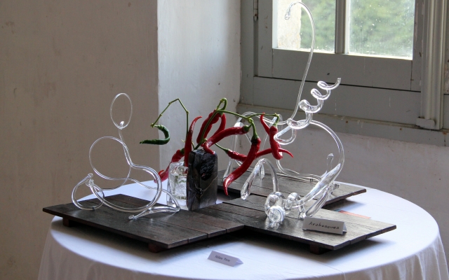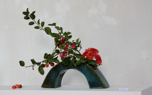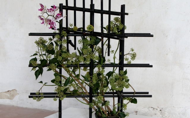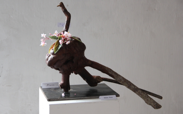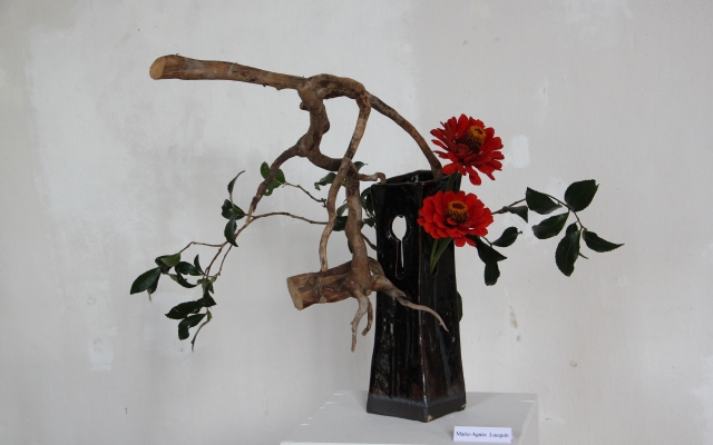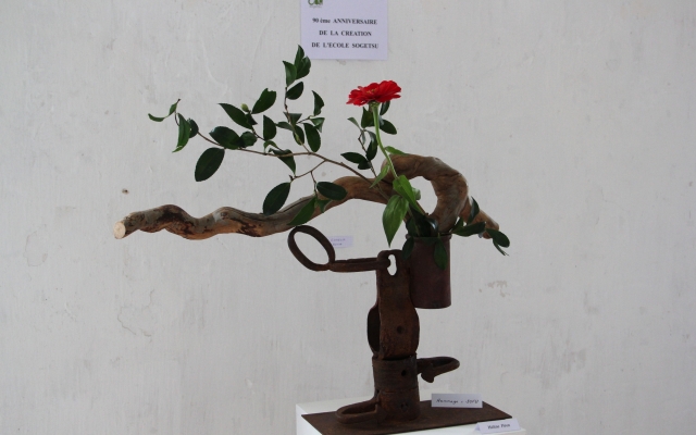 Qulques photos de l’exposition d’Art Floral, à l’Abbaye de Vertheuil, d’Hélène Piron, Professeur de l’école SOGETSU de Tokyo, le 16-17 Septembre 2017 :